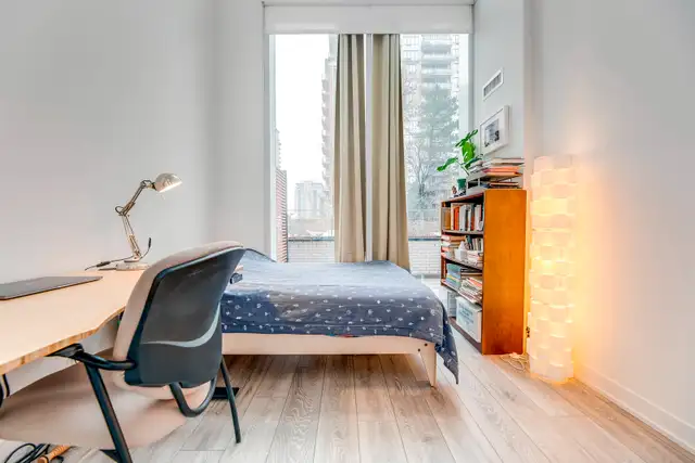 Enjoy a cozy furnished room in a newly built luxury condo unit with extra-high ceilings!