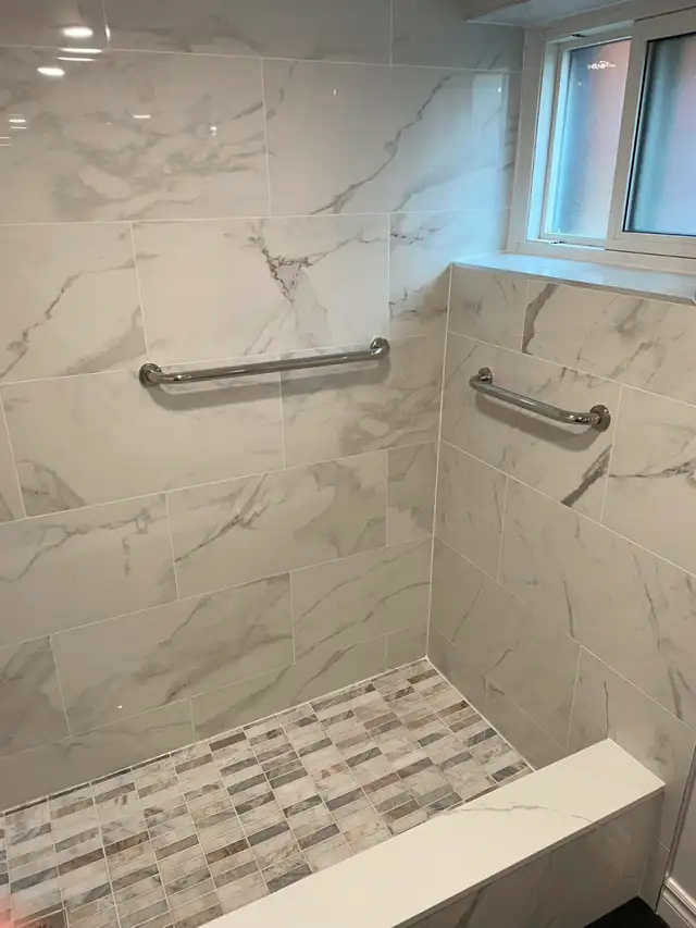 Ceiling height of the newly-renovated bathroom is not high. Suitable for occupant of below 5' 9" bodily height.
