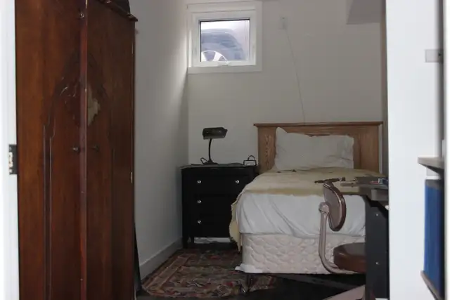 The bedroom is newly renovated and well appointed with a functioning window. There is a double door closet with plenty of shelving. The twin bed is 42 inches wide. Home is 3 Kilometers away from the 401 and the college campuses, a short bus ride or a nice morning walk from the Guild. Kennedy subway station is a 12 minute bus ride away via the 116, and the Guildwood GO station is a ten minute walk away.