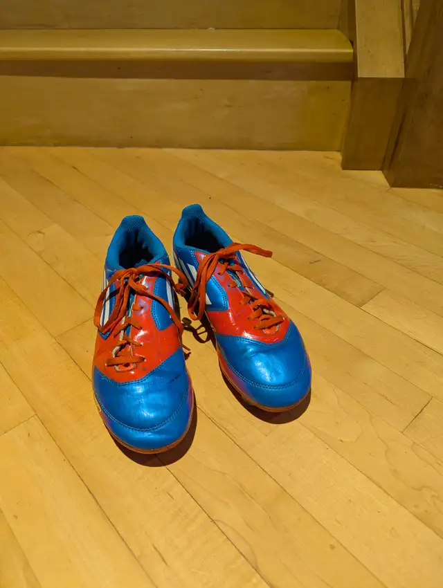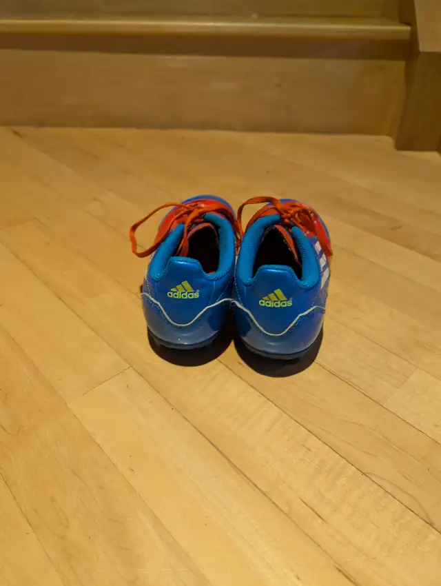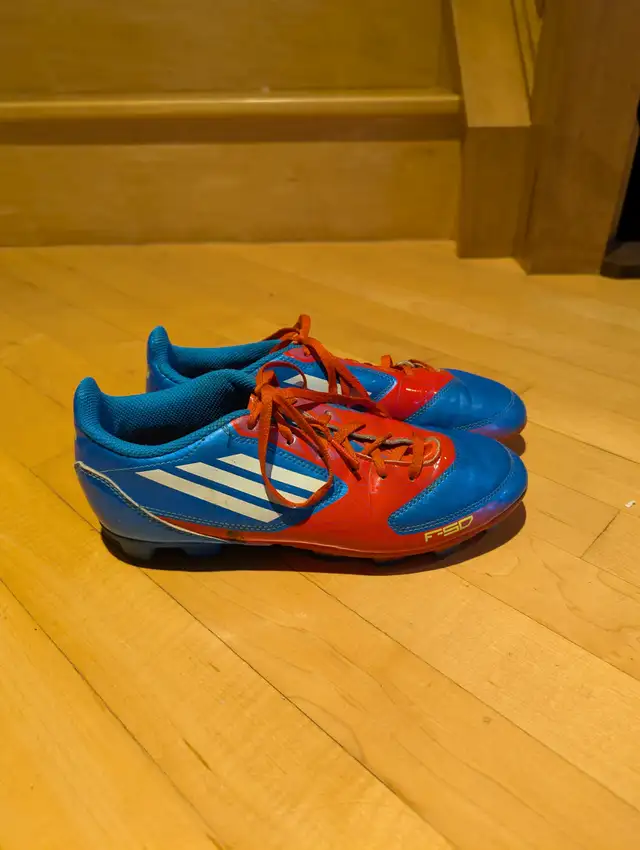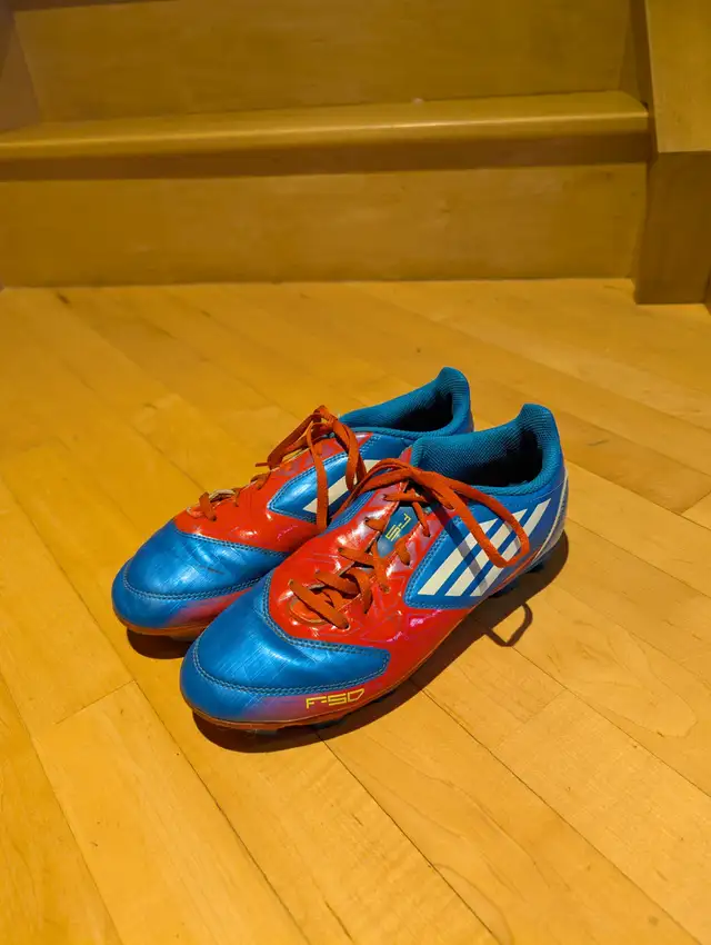 I offer for your enjoyment this pair of immaculate condition F-50 Adidas Running shoes with cleats, used by my son for soccor only a couple of months (before he grew out of them). They are youth size 5½, they have very little wear. These shoes were very expensive new and were only briefly They are made of extremely high-quality materials and in great shape.