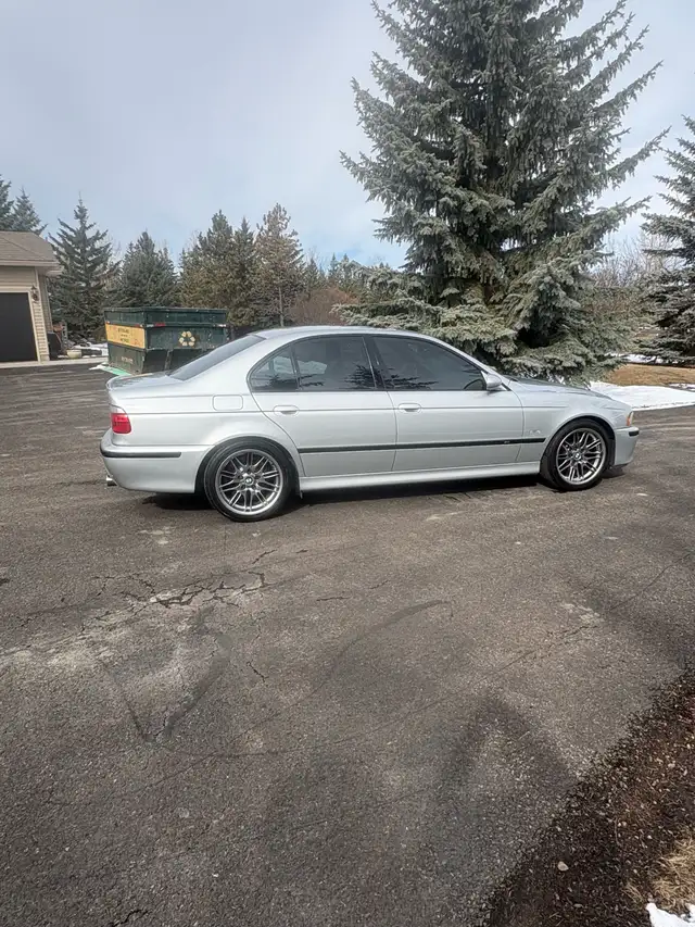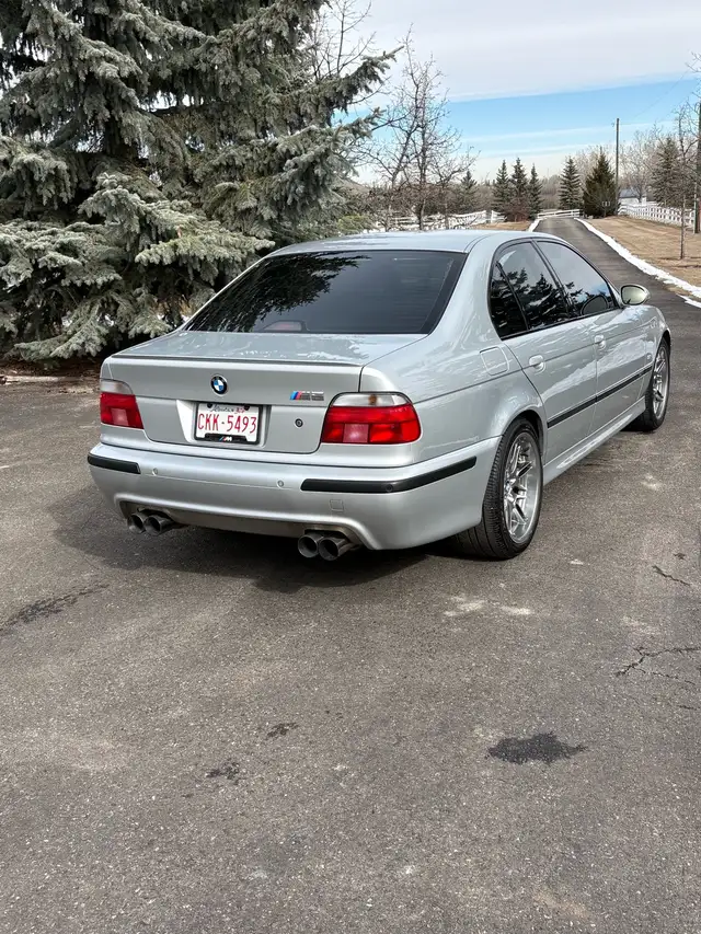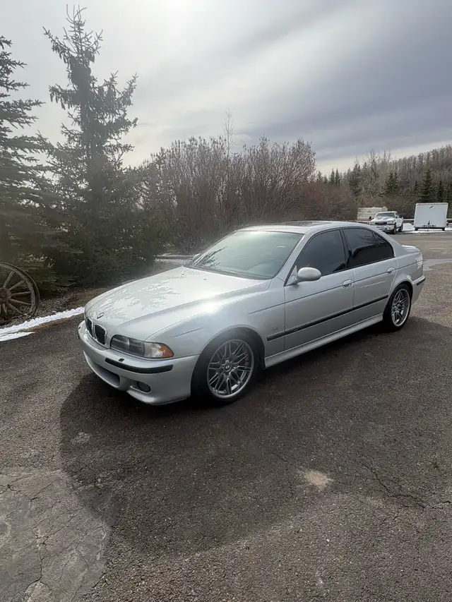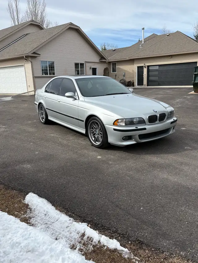 2000 BMW M5. This E39 is a legendary sport sedan that has a potent 400hp V8 engine, a six speed manual. This particular M5 is finished in desirable silverstone metallic and Napa leather interior. Features 18” M sport wheels. This is a fantastic opportunity to own the best BMW ever made! The following maintenance has been performed at 100,000km.