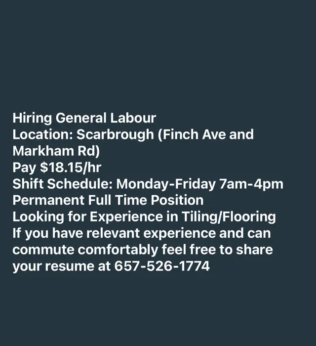 If you have relevant experience working with wood or flooring share your resume at 647-526-1774