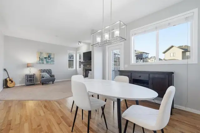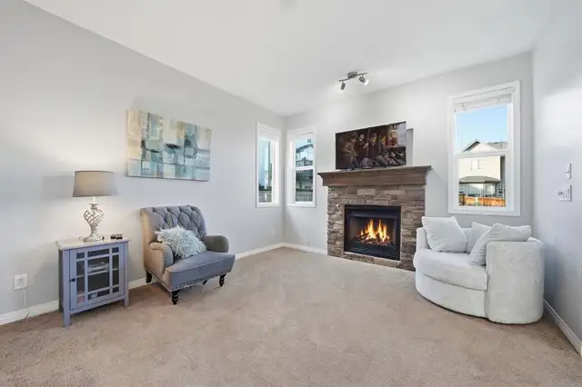 Welcome to 99 Sage Valley Park NW - a beautifully appointed residence where comfort, style, and community come together in one of Calgary's most desirable neighbourhoods. With over 2,250 sq. ft. of thoughtfully developed living space, this family home offers an inviting first impression. Gleaming hardwood floors lead you through the open-concept main level, seamlessly connecting the living, dining, and kitchen areas. The bright kitchen features a spacious pantry, a breakfast bar accented with custom wainscotting, and an expansive dining space perfect for gathering with family and friends. The living room is warm and welcoming, centred around a cozy gas fireplace. A convenient powder room and main-floor laundry complete this level. Step outside and experience one of the home's standout features: a generous 4,477 sq. ft. landscaped backyard. Enjoy summer evenings on the two-tiered deck complete with a BBQ gas line, relax under the pergola, and admire the established perennials, beautiful all season long with no annual planting required. Added trees provide both charm and privacy. Back inside, ascend the elegant staircase to your serene primary retreat, showcasing vaulted ceilings, large windows, a walk-in closet, and a luxurious 5-piece ensuite. Down the hall are two well-sized bedrooms and a 4-piece bathroom. A bright, open flex space at the top of the landing offers the perfect setting for a home office, craft area, or reading nook. The fully developed lower level features a fourth bedroom and an inviting entertainment space complete with a 65” TV and Bose sound system, also wired to the garage, ideal for movie nights or hosting guests at the built-in bar. A dedicated storage room and a rough-in for a future bathroom offer added convenience and value. Sage Valley is a community celebrated for its picturesque pathways, abundant green spaces, and family-friendly parks, perfect for evening walks, morning runs, or weekend adventures. You'll appreciate being just minutes from Sage Hill Crossing and Creekside Shopping Centre, where cafés, restaurants, groceries, and everyday amenities are all within easy reach. Top-rated schools, nearby fitness facilities, and quick access to major routes ensure a lifestyle of ease and convenience. At 99 Sage Valley Park NW, you're not just purchasing a home, you're embracing a vibrant community you'll be proud to be part of for years to come.