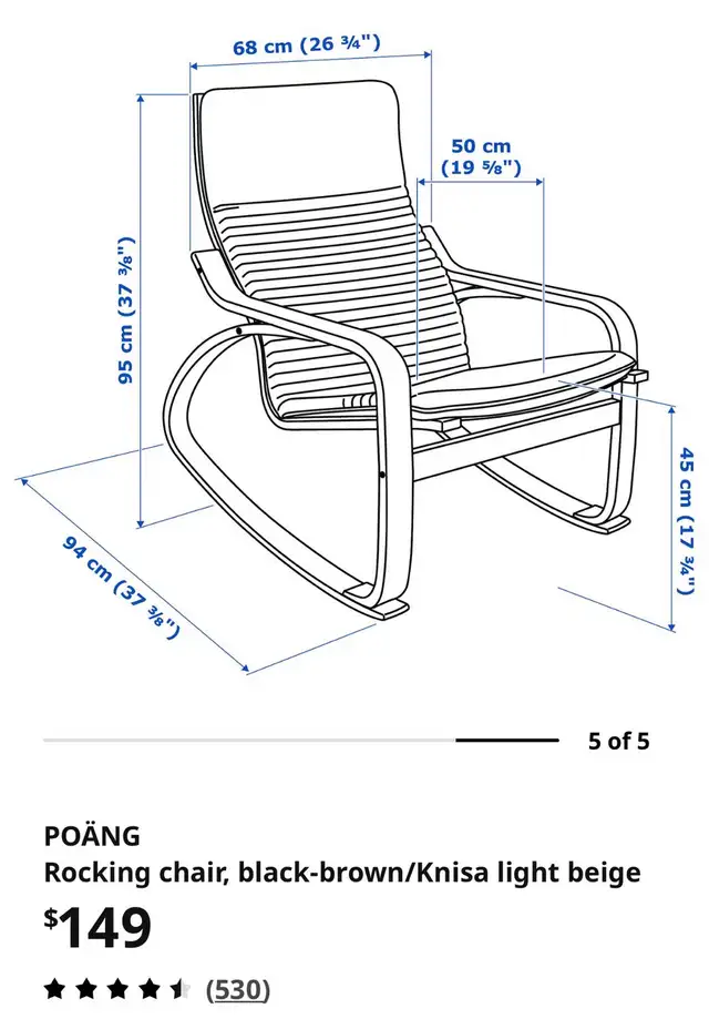 IKEA Poäng Rocking chair in black/brown and light beige. In good condition. From a smoke and pet free home.