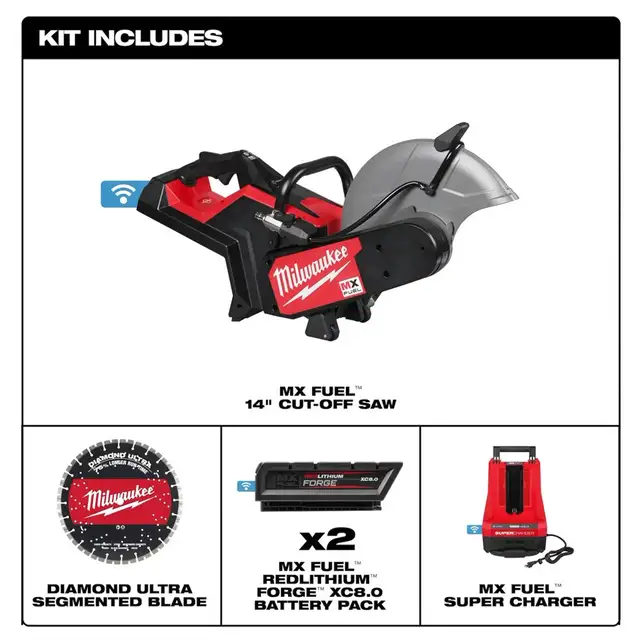 *Includes the Milwaukee MXF315-2XC 14" Cut-Off Saw, 2x XC8.0 Batteries, 1x Blade, 1x Super Charger ! ! !