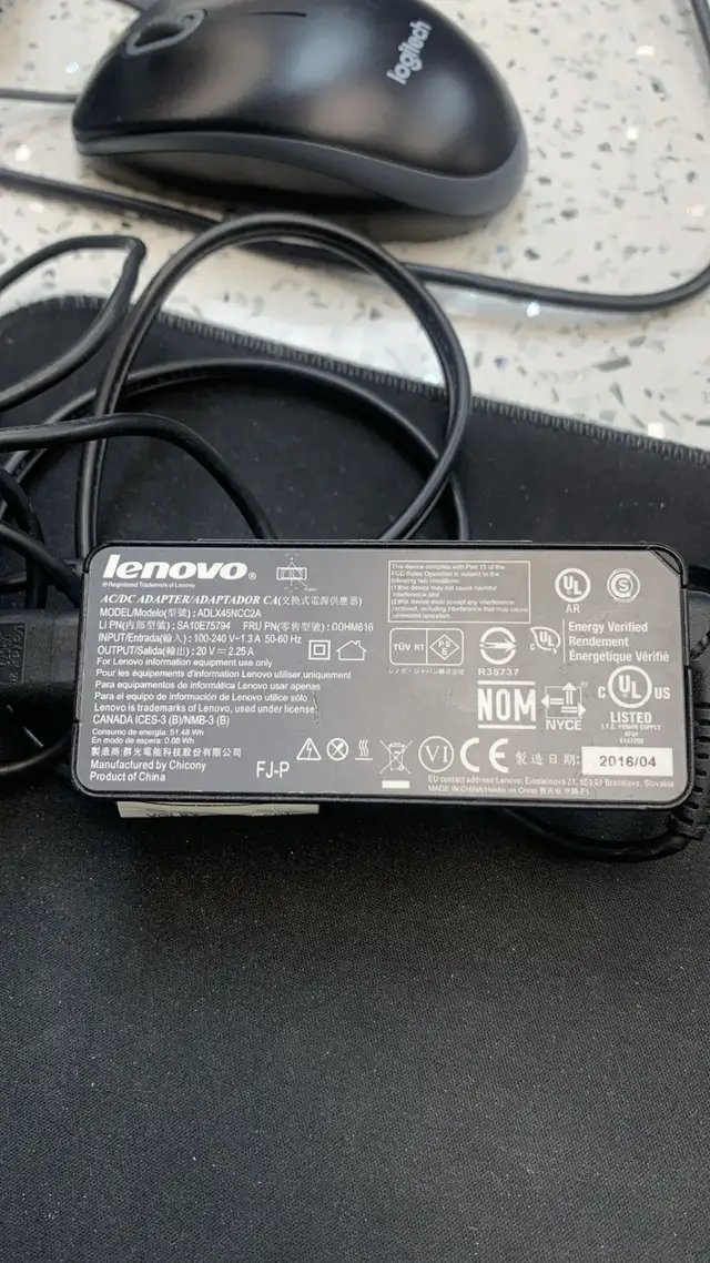 Lenovo ADLX45NCC2A 45W AC Adapter (20V 2.25A) with power cord.