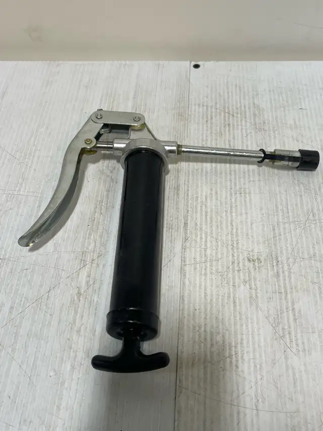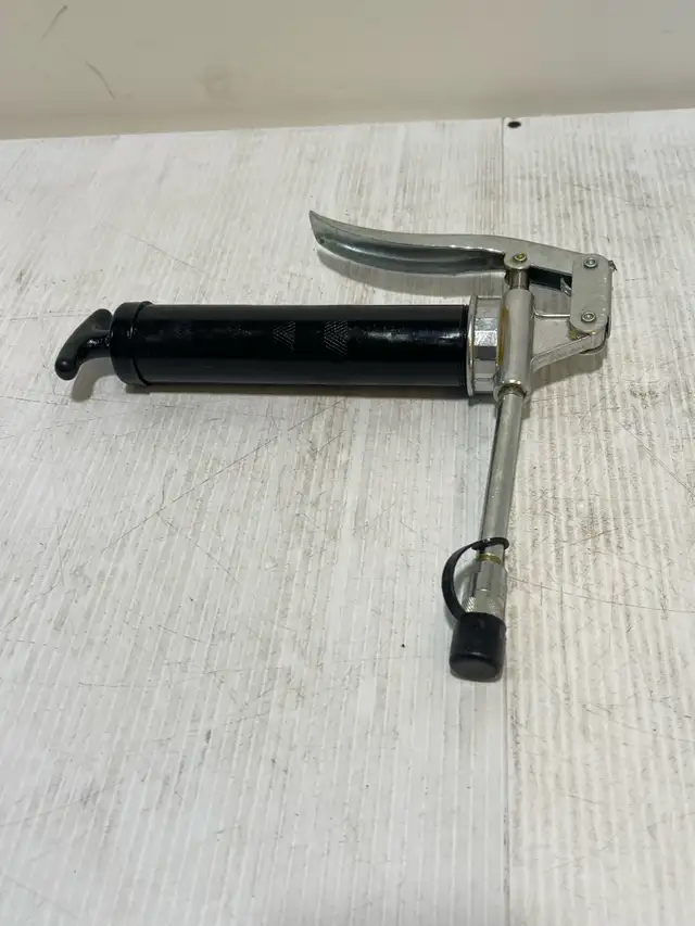 This grease gun is a reliable tool for lubricating machinery and equipment. Showing signs of wear, it's still in good working condition, ready to help keep your equipment running smoothly.