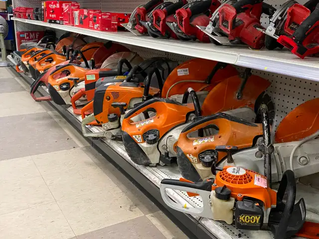We currently have a variety of professional-grade saws in stock, including models such as Stihl TS 450 and Husqvarna K770, along with similar units.
