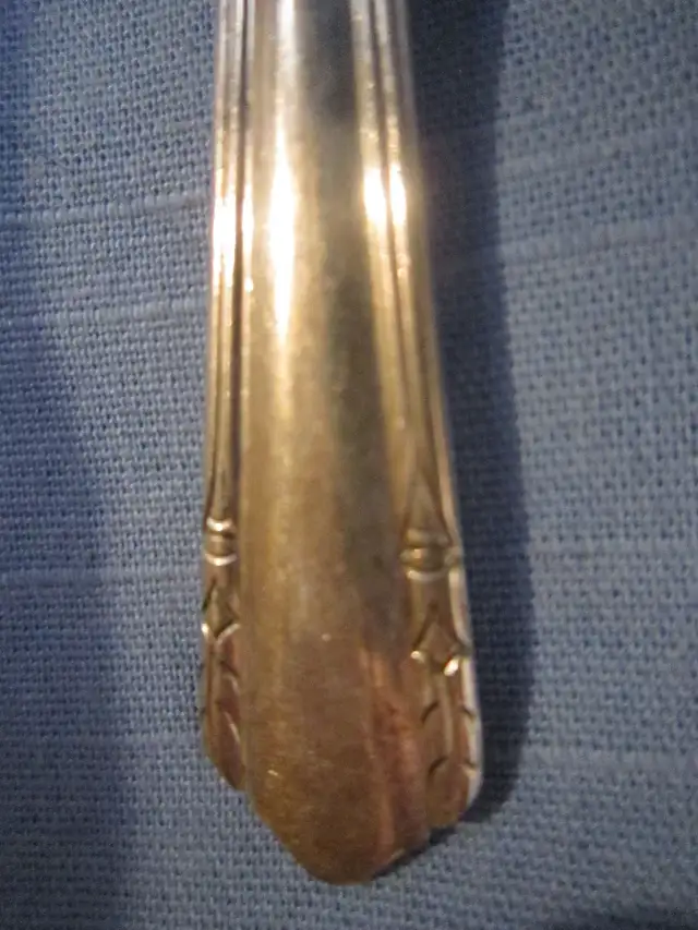 12 dinner knives, 12 dinner forks, 12 dessert forks, 12 table spoons, 12 tea spoons, 12 5 O'clock spoons, 1 serving spoon, 1 sugar spoon, 1 Master butter spreader