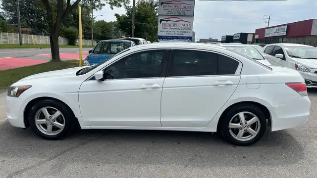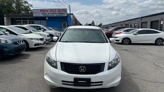 Comfortable and Well-Built, the Accord Features Great Performance and Handling. Equipped With 2.4L 4 Cylinder Engine. Elegant White Exterior on Black Interior. Loaded w/ Keyless Entry, Heated Seats, Exterior Temperature Gauge, Automatic Headlamps, A/C, Leather-Wrapped Wheel, Security System, Chrome Exhaust Finisher, Auto Up/Down Front Windows, Active Noise Cancellation, Six-CD/MP3/WMA Stereo with Anti-Theft System & Much More!!!