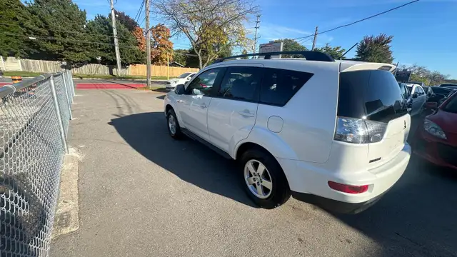 This Budget-Friendly Family SUV, Mitsubishi Outlander Comes in White Exterior Paired With Grey Interior. Features on the ES FWD include 16-inch alloy wheels, air conditioning, auto-off headlamps, mesh grille with black surround, heated mirrors, black roof rails, variable intermittent wipers, intermittent rear wiper, leather-wrapped steering wheel with audio controls, heated cloth seats, 60/40 split fold-and-tumble second-row seatbacks, dual glovebox, cargo cover, floor mats, electronic brake force distribution, active front head restraints, anti-theft alarm, tire pressure monitoring system, CD/MP3 stereo with auxiliary input, Bluetooth connectivity, keyless entry, and trip computer. & Much More!!!
