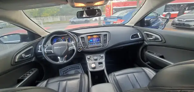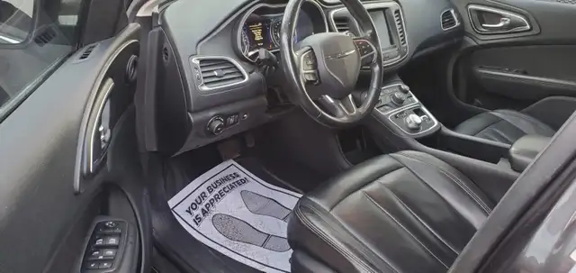 The Chrysler 200 Comes In A Black Exterior Paired Black Leather Interior. Features 3.6L V6 Cylinder Engine. Limited Edition Features 17in. Aluminum Wheels, Heated Side Mirrors, Eight-Way Power Driver's Seat w/ Four-Way Power Lumbar Support, Bluetooth with Streaming Audio Function, Heated Front Seats, LED Daytime Running Lights, Leather-Trimmed Steering Wheel, One-Touch Up/Down Power Windows, Fog Lights, Rear Chrome Accents, Satellite Radio, Six-Speaker Stereo, and Uconnect 5.0. Also Loaded w/ Power Sunroof, 60/40 Split-Folding Rear Seat, Air Conditioning, Ambient Interior Lighting, Auxiliary Input, Two 12-Volt Power Outlets, USB Port, Power Locks/Windows, Rear-Seat Armrest with Cupholders & Storage, Steering Wheel-Mounted Audio & Cruise Controls, Tilt-and-Telescopic Steering, Centre Console Storage with Armrest, Active Grille Shutters, Automatic Headlights, LED Taillights, Touring Suspension, Electric Parking Brake, Four-Wheel Disc Brakes, Intelligent Keyless Entry, Tire Pressure Monitoring, Tire Service Kit & Much More!!!