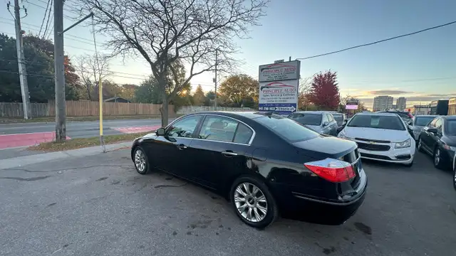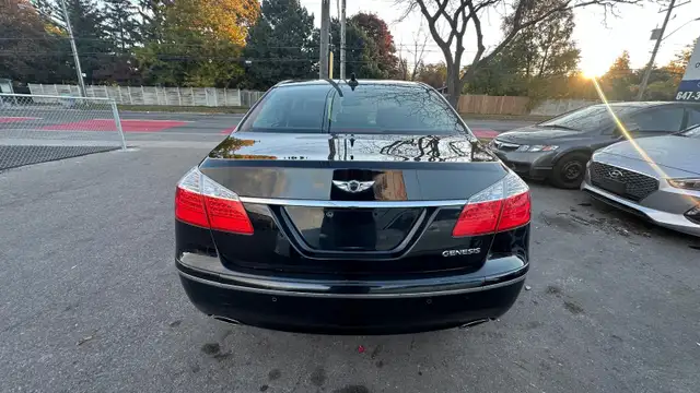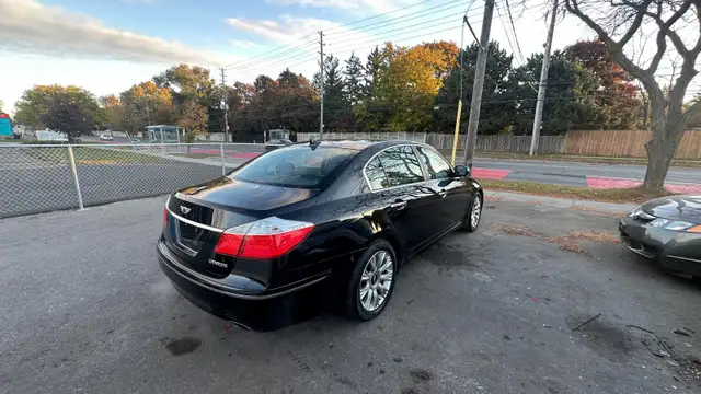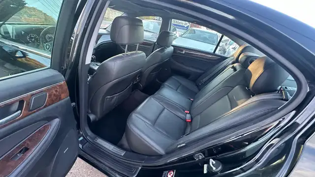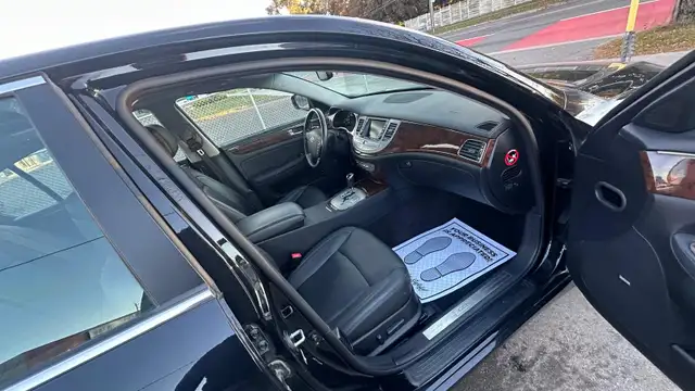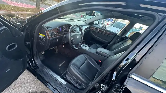 The 2011 Hyundai Genesis 3.8 trim exudes sophistication with its sleek black exterior and matching black interior. This luxurious sedan boasts a powerful 3.8L V6 engine, producing an impressive 290 horsepower and 264 lb-ft of torque. The Genesis rides on stylish 17-inch aluminum wheels, complemented by all-season tires for year-round performance. Inside, you'll find premium leather seating and a leather-wrapped steering wheel, creating an upscale ambiance. The sunroof adds an open, airy feel to the cabin, while the navigation system ensures you'll always find your way. A rearview camera enhances safety and convenience when parking. The Genesis also features Bluetooth connectivity, satellite radio, and a premium sound system for an exceptional driving experience.