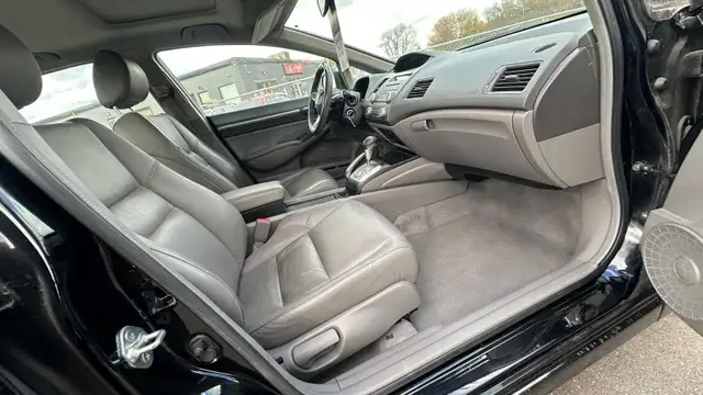 The Honda Civic Features The Reliable 1.8L 4 Cylinder Engine; Providing One Of The Best Fuel Economy! Elegant Black Exterior Paired With Grey Interior. Loaded With Keyless Entry, 16in. Wheels, Four-Wheel Disc Brakes, Rear Spoiler, Heated Mirrors, Power Sunroof, Exterior Temperature Display, Auto Up/Down Driver's Window, USB Device Connector, Leather-Wrapped Steering Wheel, 60/40 Split-Folding Rear Seat, Air Conditioner, Cruise Control, Rear Cupholders, Power Doors/Locks/Windows/ Mirrors, Tilt and Telescopic Wheel, Auto Up/Down Drivers Window, Stereo Auxiliary Input, Electronic stability control, traction control, six speakers, wheel-mounted audio controls, and heated leather seats & Much More !!!