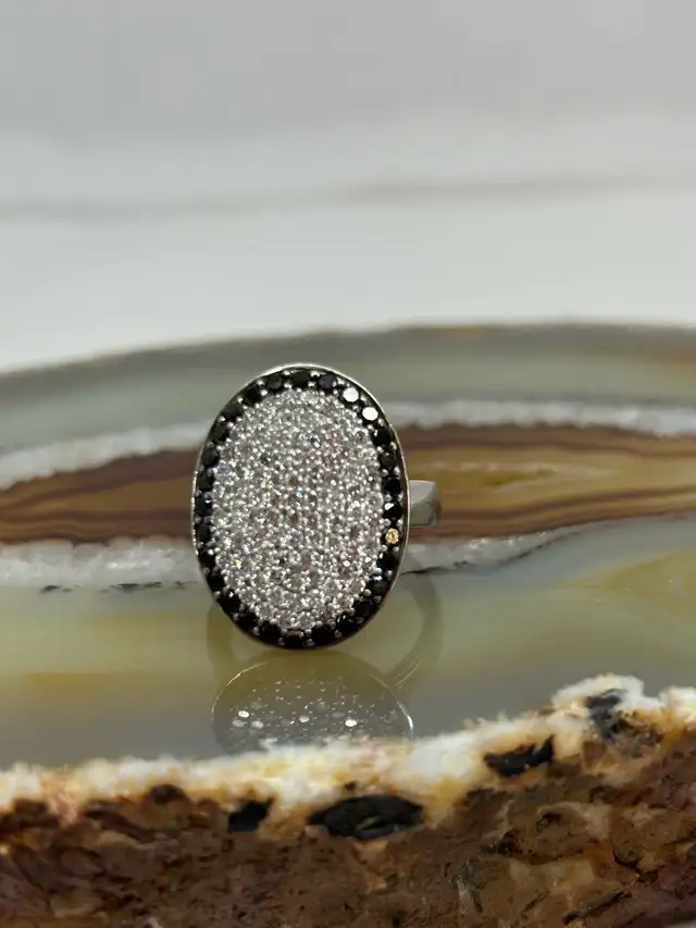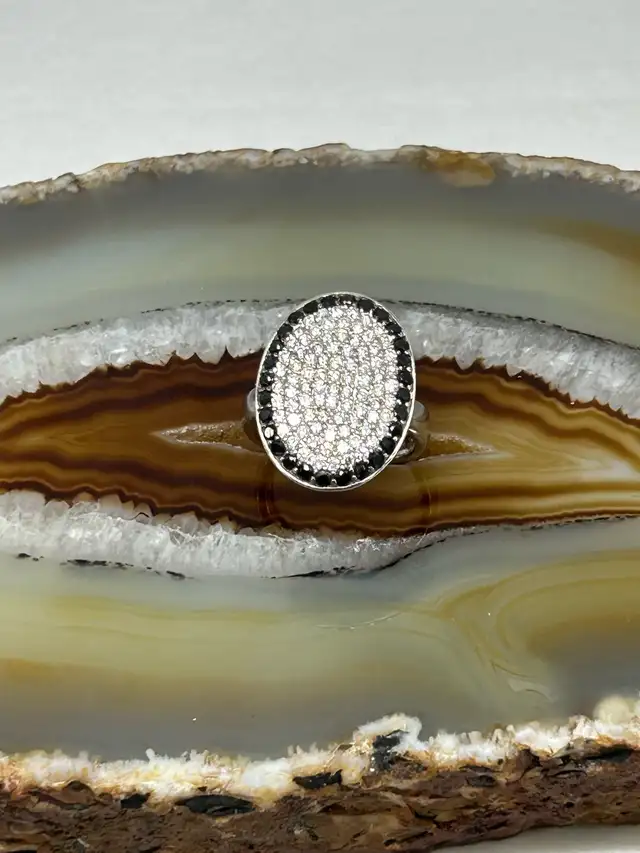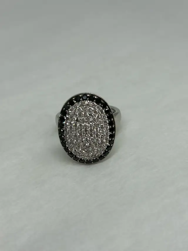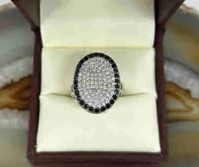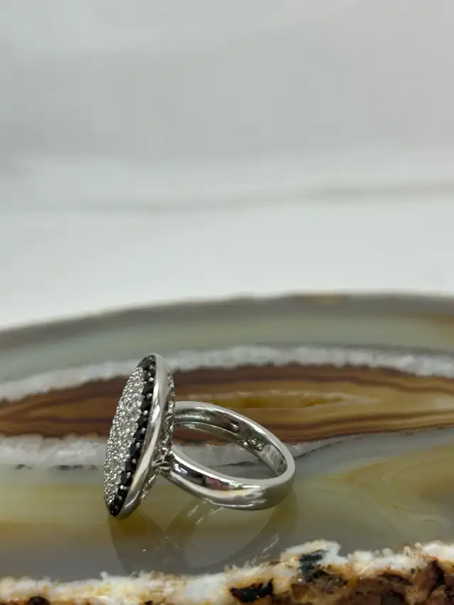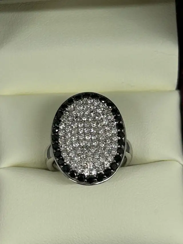 This piece is a perfect balance of classic luxury and contemporary design, ideal for someone seeking a distinctive statement ring that combines timeless white diamonds with the bold allure of black diamonds.