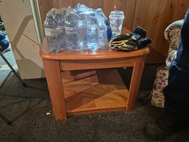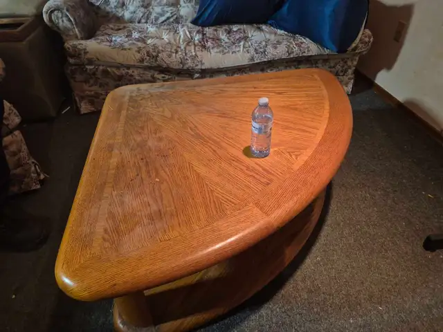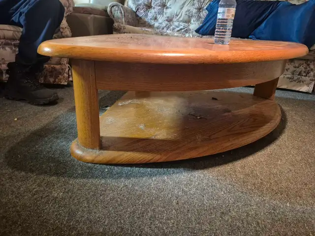 Heavy oak coffee table. Top lifts up. Missing 1 out of 3 wheels. Very heavy. You pick up, bring multiple people.