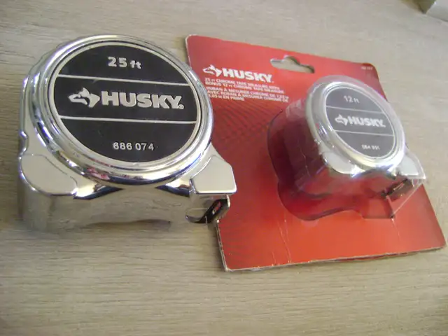 The 25 foot tape measure is used but in good working condition and the 12 foot tape measure is brand new still in its original packaging . If interested, call Mel at 416-282-2633 or send OKz.ca email.