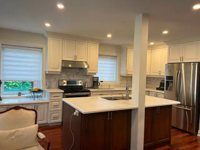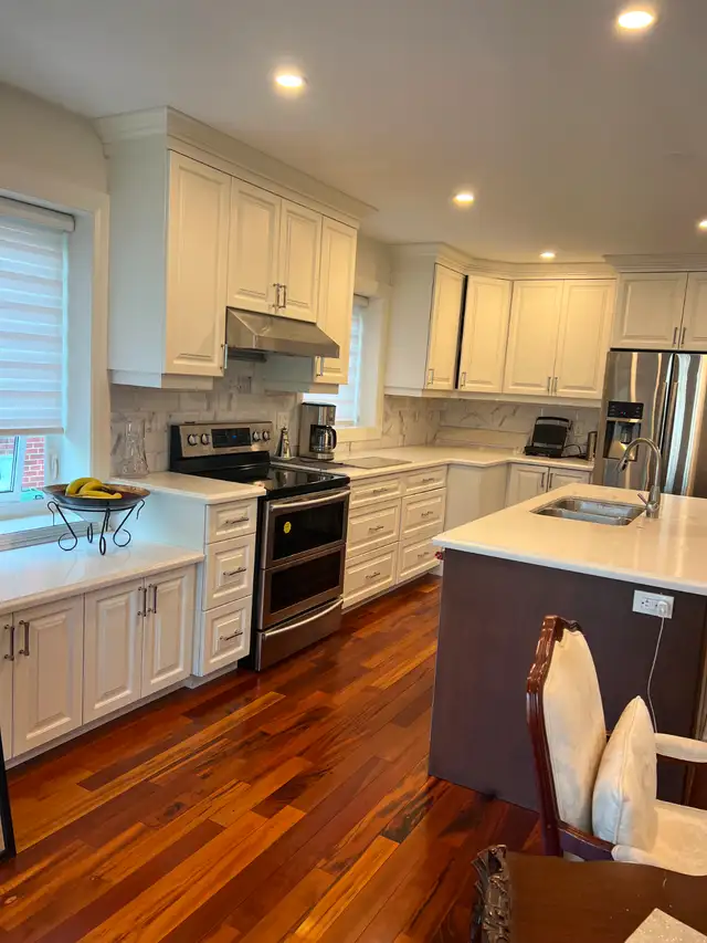 Bright and clean private bedroom in a quiet, Renovated home. Shared kitchen, dining area, and bathroom (with one other person),