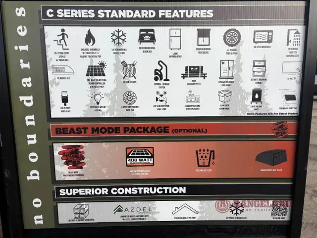 Outdoor Kitchen MOSSY CLOUD; C-SERIES PACKAGE; TANDEM AXLE BEAST MODE PACKGE; LOW PROFILE A/C IPO STANDARD A/C; DRY WEIGHT - 5,584LBS