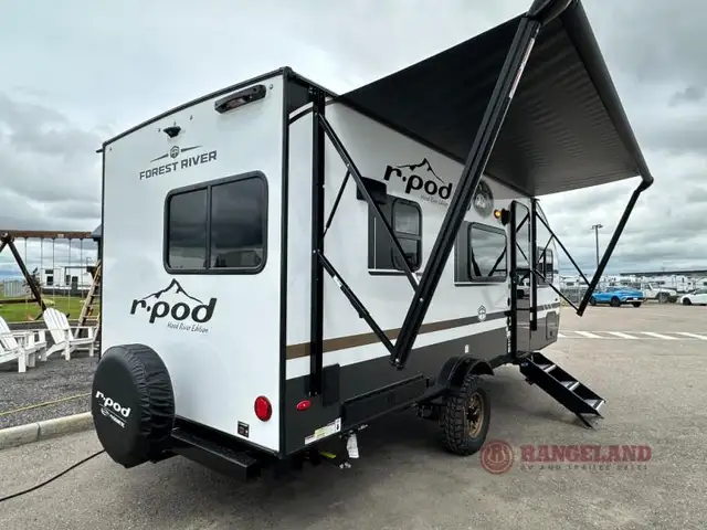 With any R-Pod travel trailer by Forest River, you will enjoy affordable luxury at the lowest tow weight in its class! There is a sealed underbelly with forced heat, a curved dual-pane acrylic front window with a bug screen and night shade, plus a large roof mounted solar panel for off-grid capabilities. The 15K A/C unit will keep you comfortable during the summer camping months, and the tankless water heater will provide endless hot showers after hiking, biking, swimming and more! Each model also includes a black glass friction hinge entrance door, roof ladder prep, exterior motion lighting, plus a hot and cold exterior spray port to wash off sand from the beach. Inside, you'll enjoy seamless Surf-X kitchen countertops, blackout roller shades, and a central vacuum system for hassle-free cleaning!