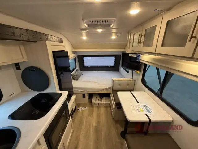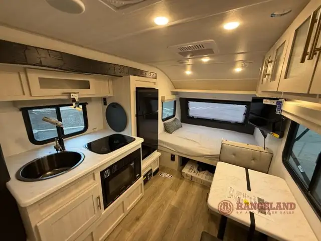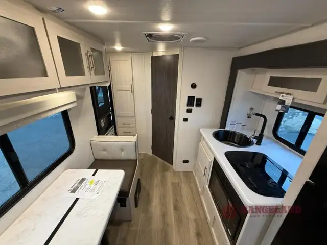 Get ready to travel just about anywhere with this lightweight travel trailer! This model is ideal for any couple. There is sleeping space on the front queen bed, and the booth dinette can easily convert into a sleeping spot for another tired camper. The slide out along the roadside helps open up the floor space, plus you will find all of the kitchen amenities here. The spacious full rear bath with a night light in the rear has plenty of room to easily get ready for any adventure that lies ahead. You will also enjoy all of the exterior storage for all of your outdoor camping gear. This model also includes the Hood River Edition that comes with Mud Legend all terrain tires with TPMS, advanced ground clearance, a MaxxAir vent cover, and 12V tank heaters!