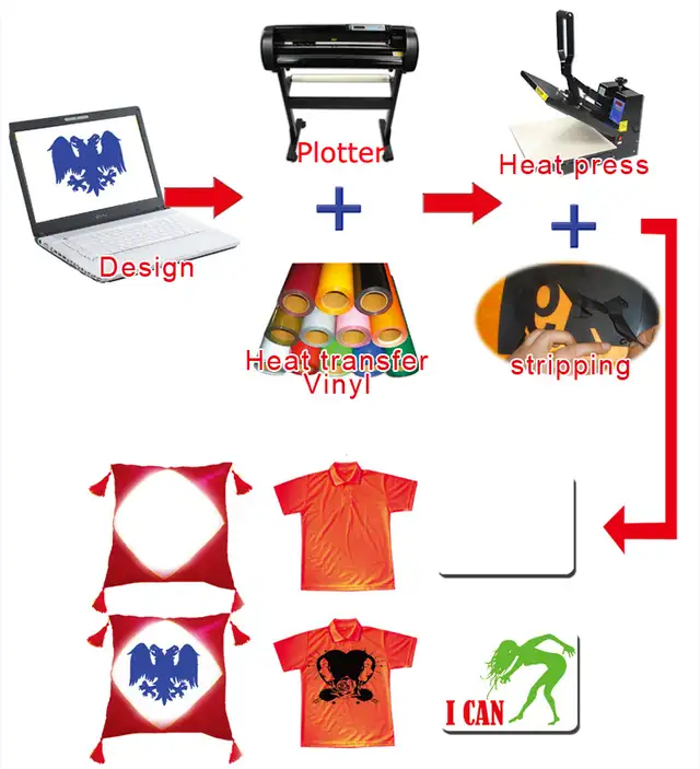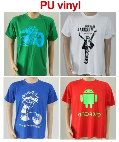 PU vinyl transfer is now the most popular heat press material. PU vinyl can be cut by a vinyl cutter to print name, number, logo and design on T-shirts, sports wear and other garments by a heat press. It is very durable, stretchable, washes fast and will last life of garments.Process the image on your computer, cut the picture contour with cutter plotter, then peel off the part you don't need. At last, press the image on T-shirt or other fabric products.