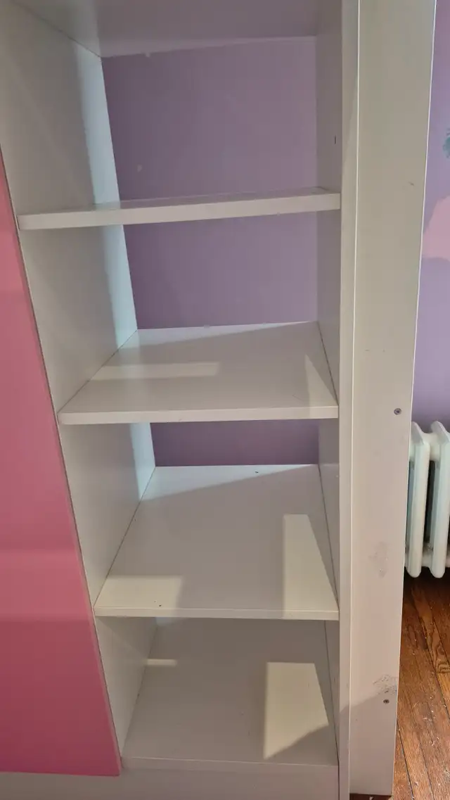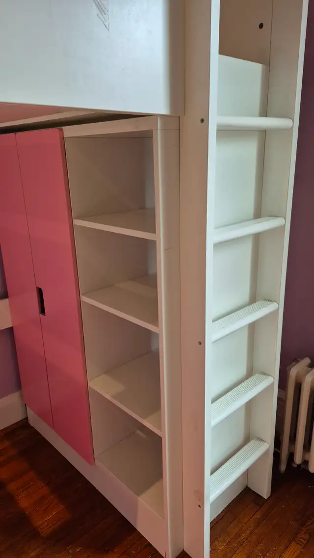 Only $290! Can deliver for a few bucks depending where you live! This Ikea Smastad loft bed is in good condition, with some wear like scratches. It's great for girls or boys. Can remove the pink drawers and pink doors for a boy. Kids love this bed! It's already been carefully DISASSEMBLED for easy transport, saving you lots of disassembly time. All the hardware and parts are there. Sells at Ikea for $900 Save big!