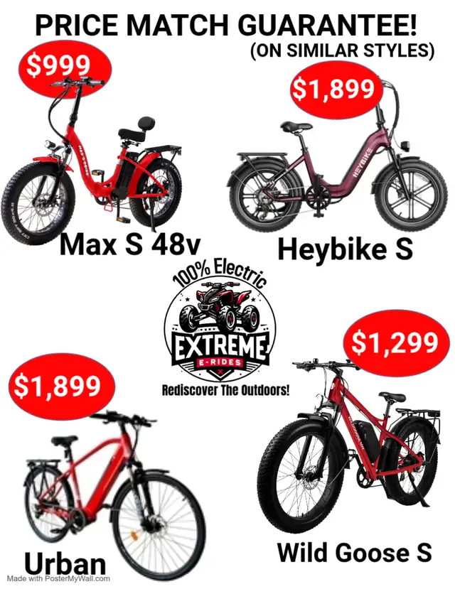 At Extreme E‑Rides, we don't just sell e‑bikes and scooters — we deliver freedom, value, and unbeatable service. Whether you're cruising the trails, commuting to work, or upgrading your delivery fleet, we've got the perfect ride for you!