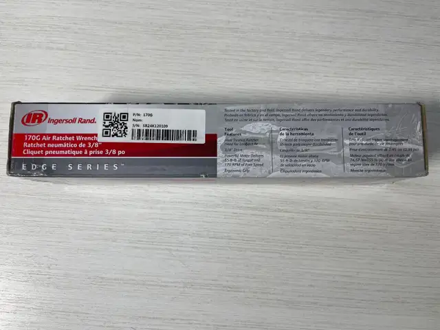 Ingersoll Rand's EDGE Series 170G air ratchet pneumatic wrench delivers the power you need to get the job done. At 55 ft.-lbs. of maximum torque and 170 rpm free speed, this air ratchet is the perfect fit for all your projects. The 170G can be used in a broad range of applications where light disassembly and assembly of products is necessary, or you need to access those hard-to-reach tight spaces.