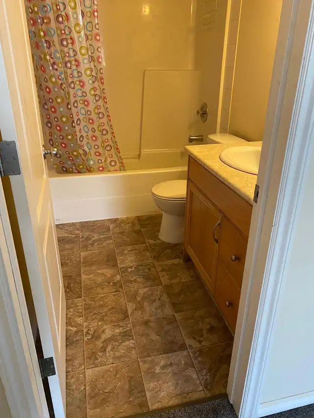 It has 2 spacious bedrooms and 1 full bathroom also a separate entrance and a spacious kitchen.