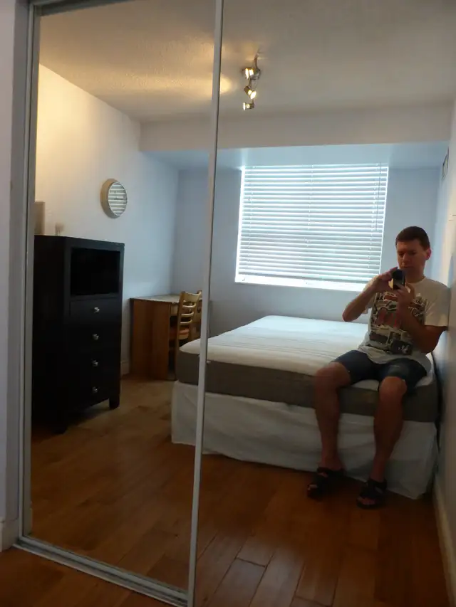 A furnished room with private bathroom is available from Apr 1 in a 2-bedroom, 2-bathroom downtown condo with a great downtown view.