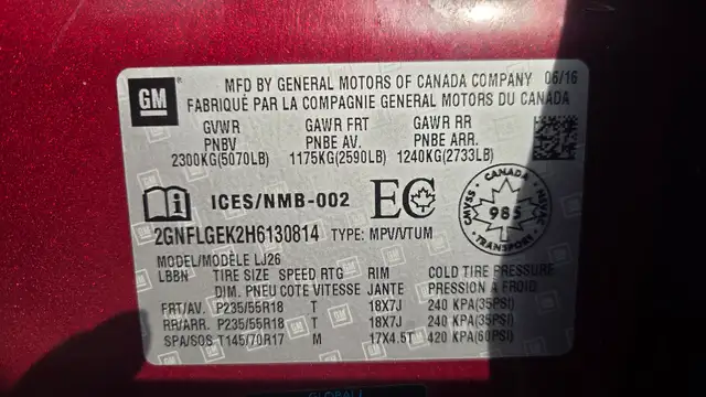 - GVWR, 5070 lbs (2300 kg) (Requires all-wheel drive vehicles and (LEA) 2.4L DOHC 4-cylinder SIDI engine.)