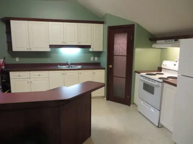 1200 sq-ft Executive suite in Heritage character home on west hill, Cherry black oak kitchen, large pantry, Vaulted ceilings, full four-piece marble bathroom, large rolling island, private off-street parking $1300.00 for working couple or post secondary students with landlord references phone 306-961-7882
