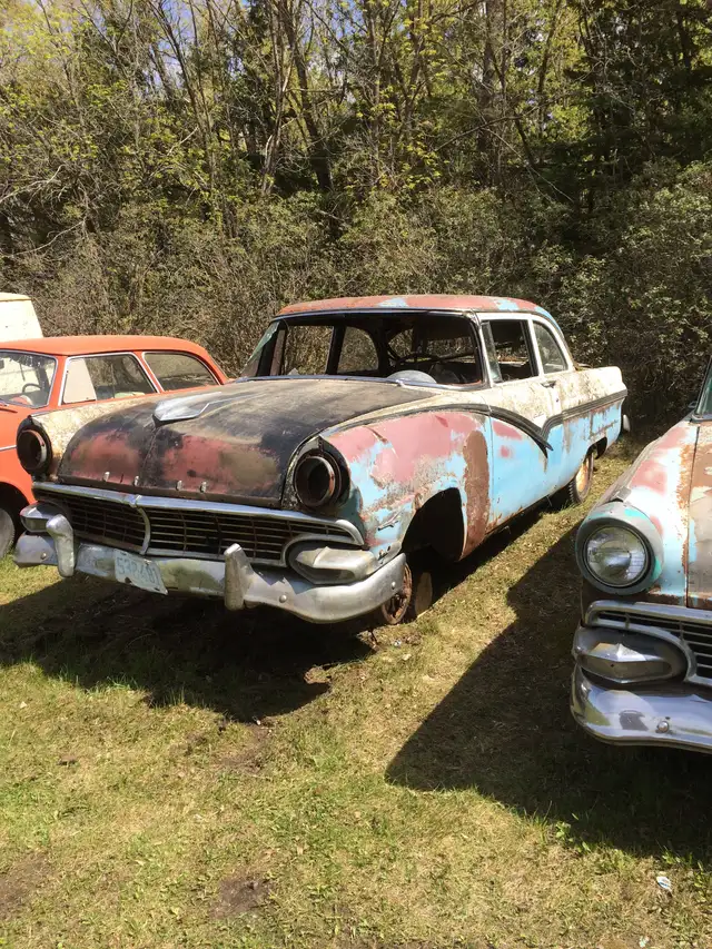 Selling 1956 ford project cars or parts cars. Also have lots of parts for these. Phone or text if interested 306-960-2052.