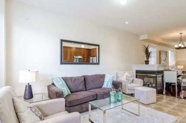3 Bedroom house for lease. Steps Away From LakeLands Park With a Nice Beautiful Lake and Park For The Kids, Get your Morning Started With A Nice Walk Around The Lake, The Home Boasts a Fantastic Open-Concept Layout, 9-foot Ceilings, and Pot Lights on the Main Floor, Along With Hardwood Flooring in the Living and Dining Areas. The family Room is enhanced by a Three-Sided Fireplace. The Contemporary Kitchen Features a Granite Countertop, Breakfast Bar, Stylish Backsplash, and Built-In Appliances. An Elegant Oak Staircase With Wrought Iron Railings Leads To The Impressive Upper Level. The master Bedroom Includes A 4-piece Ensuite With a Soaking Tub And Two Walk-in Closets. All Bedrooms Are Generously Sized.This Is Truly a Special Area, With Good Schools and Right NEXT to The 410 Highway ( Upper Unit ). Call 647-769-7046 for showing