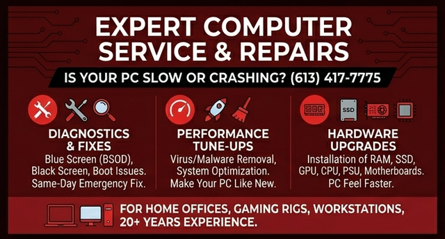 Whether you need a same-day emergency fix, a simple cleaning or a custom-built PC, I deliver professional results at the lowest guaranteed price.