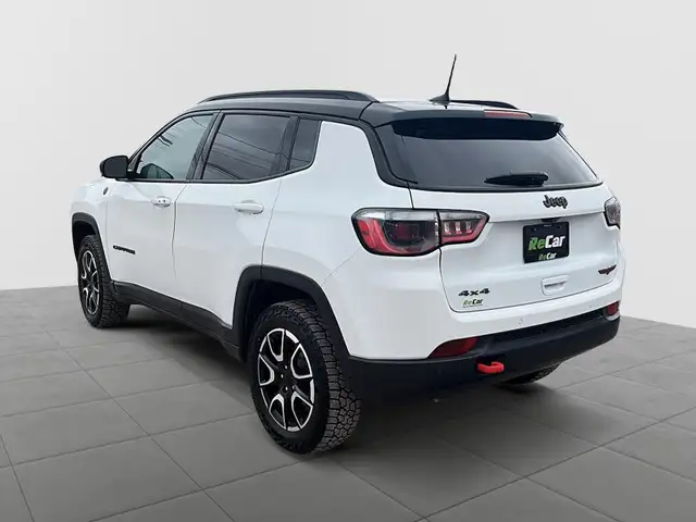 The 2024 Jeep Compass Trailhawk with the Sun and Navigation Package, leather seats, is a rugged, tech-forward explorer, purpose-built to navigate the dense forests of New Brunswick and the rocky shorelines of Newfoundland with unmatched off-road authority.Turbocharged Muscle and Legendary Trail Rated® CapabilityUnder the hood, the 2024 Compass Trailhawk features a potent 2.0L Turbocharged I4 engine, delivering a stout 200 horsepower and 221 lb-ft of torque. This efficient powerplant is paired with a smooth 8-speed automatic transmission and the exclusive Jeep Active Drive Low 4x4 system. This advanced setup includes a 20:1 crawl ratio and a specialized Rock Mode within the Selec-Terrain® Traction Management System, ensuring you can crawl over coastal boulders or trek through deep PEI snow with absolute confidence. With an off-road suspension, skid plates protecting vital components, and a one-inch factory lift, the Trailhawk provides the ground clearance and mechanical grit needed for the most demanding Maritime adventures. Vigilant Security and Intelligent Safety HardwareSafety is a core priority for this Trail Rated® SUV, featuring over 75 standard and available security features designed for unpredictable provincial roads. The Trailhawk comes equipped with the Jeep Safety Group, offering Forward Collision Warning with Active Braking, Blind-Spot Monitoring with Rear Cross-Path Detection, and Active Lane Management. To assist during foggy Atlantic nights, the LED Reflector Headlamps provide piercing visibility, while Hill Descent Control manages throttle and braking automatically on steep, slippery grades. Whether you are navigating busy Halifax traffic or a rural backroad, the Compass provides a comprehensive layer of protection for every passenger. Premium Digital Navigation and Open-Air FreedomThis specifically equipped model features the Sun and Navigation Package, transforming the cabin into a high-tech sanctuary. The centerpiece is the Uconnect® 5 NAV system with a massive 10.1-inch touchscreen, featuring Integrated GPS Navigation with 3D landmarks to guide you to the most remote corners of the Maritimes. This package also includes a Dual-Pane Panoramic Power Sunroof, allowing you to fully enjoy the fresh Atlantic salt air during our beautiful summer months. With Wireless Apple CarPlay and Android Auto integration, alongside a Wireless Charging Pad, the Compass ensures you stay seamlessly connected and powered up throughout your journey across the provinces. Aggressive Styling Meets Essential Winter ReadinessThe Trailhawk makes a bold statement on Atlantic roads with its signature anti-glare hood decal, red front and rear tow hooks, and 17-inch Gloss Black aluminum wheels To master the harsh local climate, the cabin is fully equipped for winter with heated front seats, a heated leather-wrapped steering wheel, and a windshield wiper de-icer. The interior is refined with premium cloth and leather-faced seating featuring Ruby Red accents, while the dual-zone automatic climate control ensures a tailored environment for all occupants. From the LED fog lamps to the Remote Start System, every detail is engineered for year-round comfort in Saint John or Charlottetown. The Ultimate Adventure Tool for the Atlantic LifestyleThe 2024 Jeep Compass Trailhawk represents the premier choice for those who demand turbocharged performance, genuine 4x4 capability, and top-tier digital luxury. With its standard skid plates, panoramic sunroof, and integrated navigation, it is the most capable and connected compact SUV to handle our unique provincial landscape.Visit us today to experience the 2024 Jeep Compass for yourself. Secure Your Confident Drive Today! Only $29,998 or $125/Wk Tax Inc $0 Down! Email Sales@ReCar.ca for more info!All ReCar Certified Vehicles come with our 360 degree inspection which is a very meticulous and comprehensive 170 point mechanical and cosmetic inspection! For added convenience and peace of mind, we offer a 7 day test drive which means within the first 7 days of ownership, if you are unhappy with the vehicle or feel you made the wrong selection, you may bring it back to ReCar and exchange it for a different vehicle in stock. This Certified vehicle comes with a Brand new NB MVI sticker on it, fresh oil and filter change and complimentary CarFax vehicle history report. Our Certified vehicles also get the Guaranteed Best Interest rates and we offer Customer focused Fixed, No Pressure Pricing. Our Non Commissioned vehicle advisors also offer test drives to your door on our Certified vehicles!Fast, Flexible Financing for Everyone – We work with over 16 lenders; not only to get you the best possible rates but to also provide you with the best possible terms, regardless of your credit situation. No Obligation Pre-Approvals within 2 hours from the Comfort of Your Home!! Apply Online @ www.ReCar.ca/Apply.It is the purchaser's responsibility to personally verify the year, make, model, mileage, options and any remaining or extended warranty prior to purchasing this vehicle. Although many of our ReCar Certified vehicles have multiple sets of keys, a minimum of 1 key can be guaranteed with our ReCar Certified vehicles