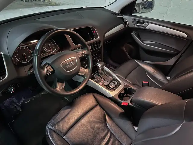 The 2017 Audi Q5 Premium Plus is a compact luxury SUV powered by a 2.0 L turbo-charged inline-4 that produces 220 hp and 258 lb-ft of torque, paired with an 8-speed automatic and standard quattro AWD for confident all-season traction. Its premium trim adds features like leather seating, panoramic sunroof, dual-zone climate, advanced infotainment, and driver aids, making it a refined, comfortable choice for daily driving and longer trips.