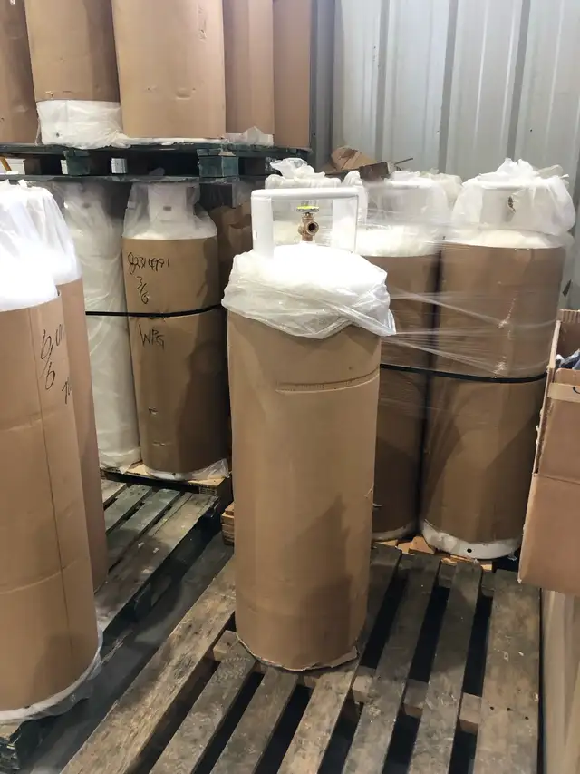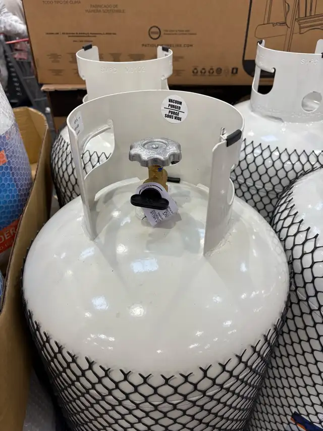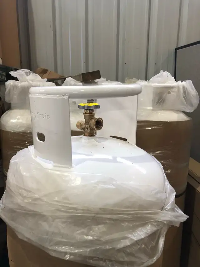 Brand new 100 pound propane tanks. These are heavy duty tanks with a larger collar for safety. The other picture I posted is to show what some other tanks look like.