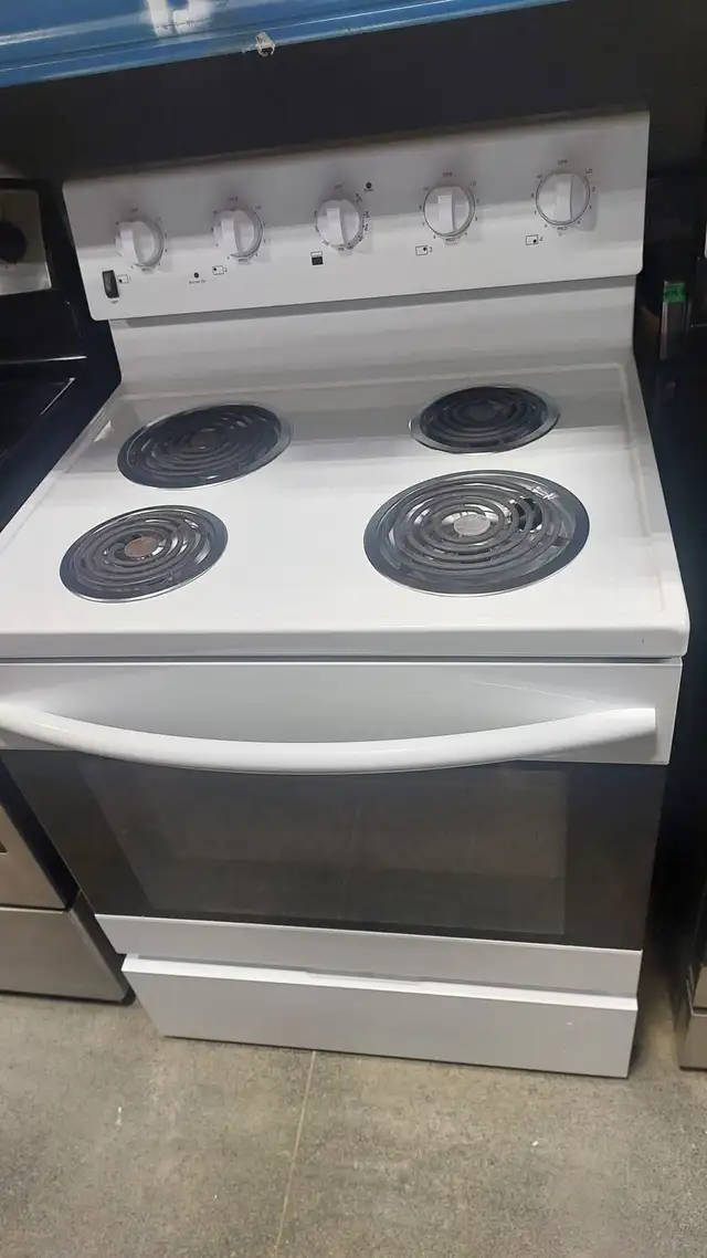 30” Electric Range (EECR34MEW-CA) – classic white with coil burners.