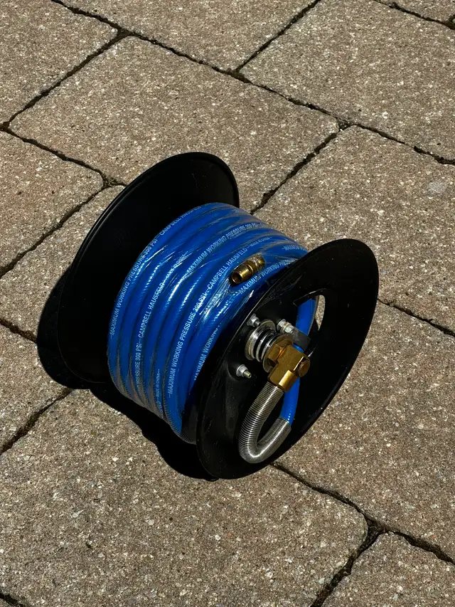 Bought it some time ago but don't need it. Brand new Mastercraft PVC Manual Air Hose Reel, 3/8-in x 50-ft, never used, comes with handle which never had a chance to attach. Will sell for $40, new in store is $95. Contact Alex at (905) 460-6478, please text or though the add.
