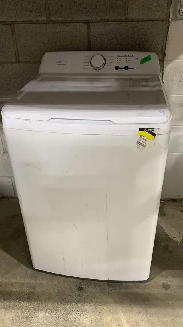 Insignia top load washer in white – simple and reliable.
