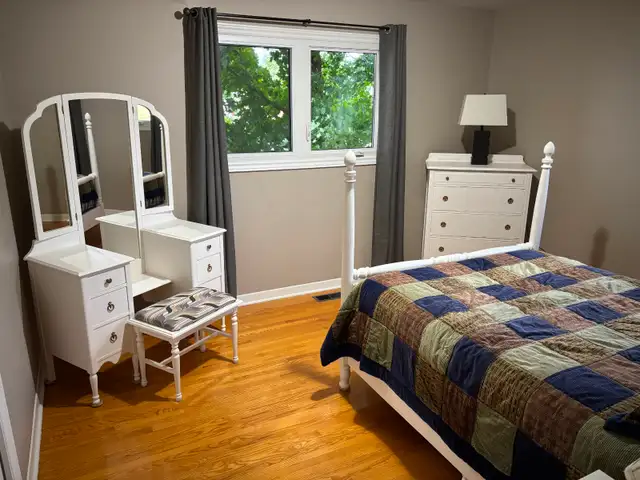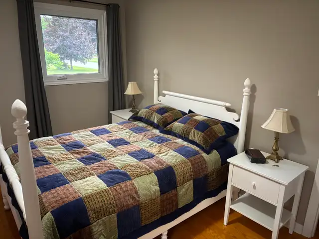 ARNPRIOR - AVAILABLE MAY 1 - Furnished master bedroom in a quiet, central area of Arnprior for rent. $735 per month. Single occupancy only. Shared spaces include the main bathroom, living room, dining room, kitchen and laundry room. House is shared with one other tenant and the landlord. Further pets are not allowed, as the landlord has two Labrador Retrievers. Rent includes utilities such as WiFi, heat, hydro, water, air conditioning. No smokers please. Must be able to prove full-time employment and have suitable credit. First and last month's rent is required. A pre-screening chat by phone is required before booking an appointment for viewing. Call Travis at 613-859-0820.
