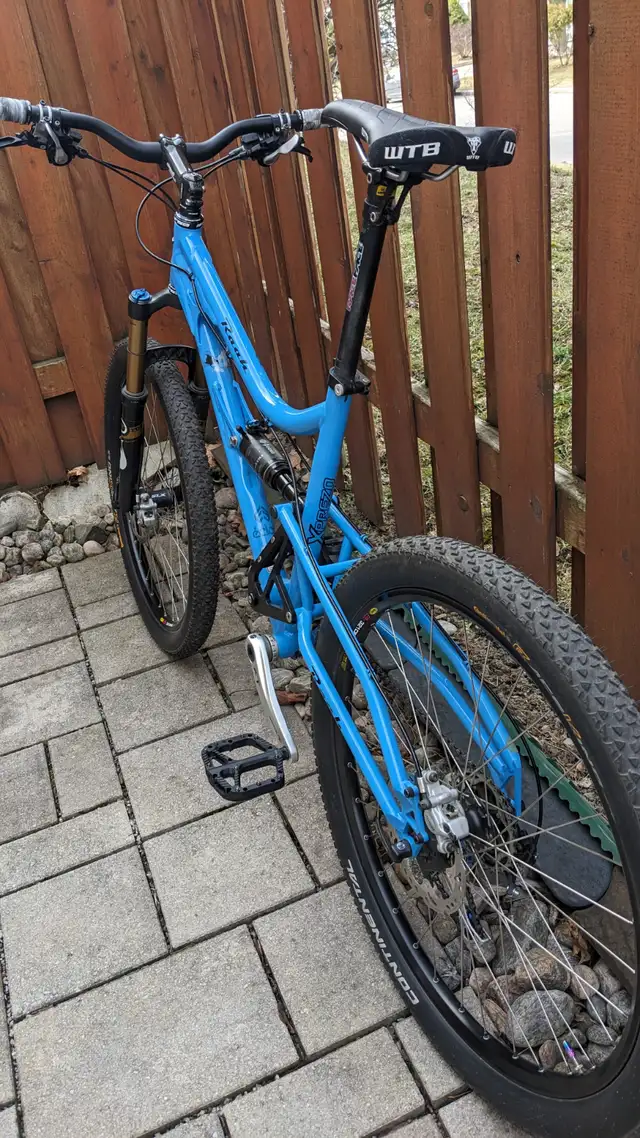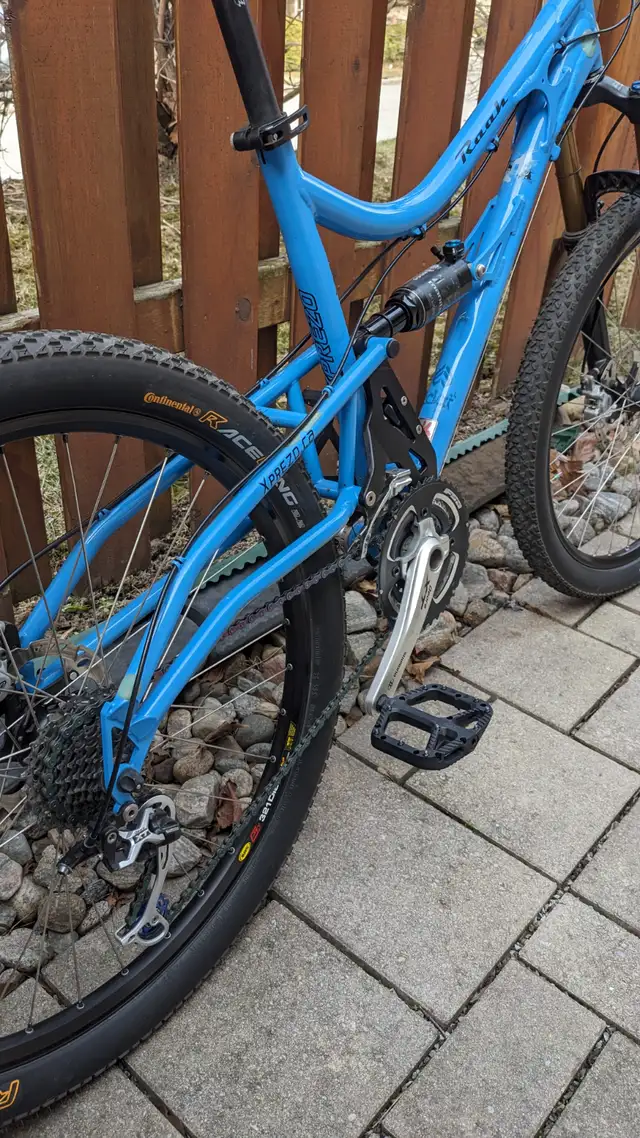 Bike rolls fast and has 5 inches of rear travel that compliments the adjustable travel Fox Talas fork. I'm looking to sell because I just don't ride this bike the way it deserves to be ridden anymore.