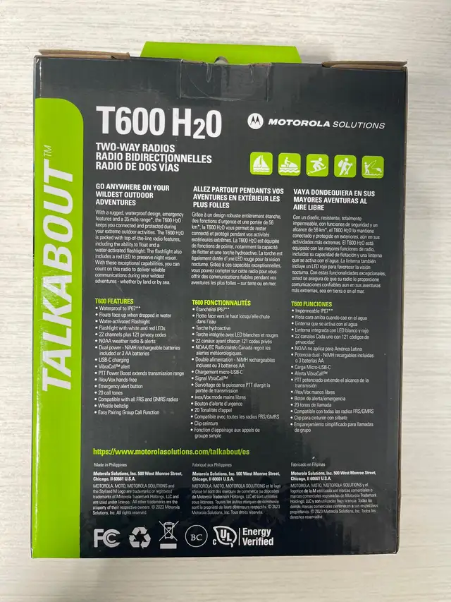 With a rugged, fully waterproof design, emergency features, and a 35-mile range*, the TALKABOUT T600 H2O keeps you connected and protected during your extreme outdoor activities.