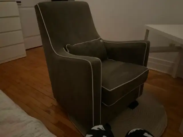 Chaise berçante style sofa acheté au magasin Rose ou Bleu. Je demande 350$. Vous pouvez me contacter au 514-658-1717 aucun texto.