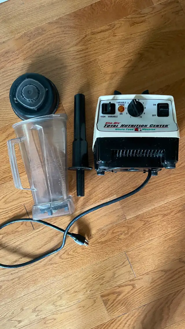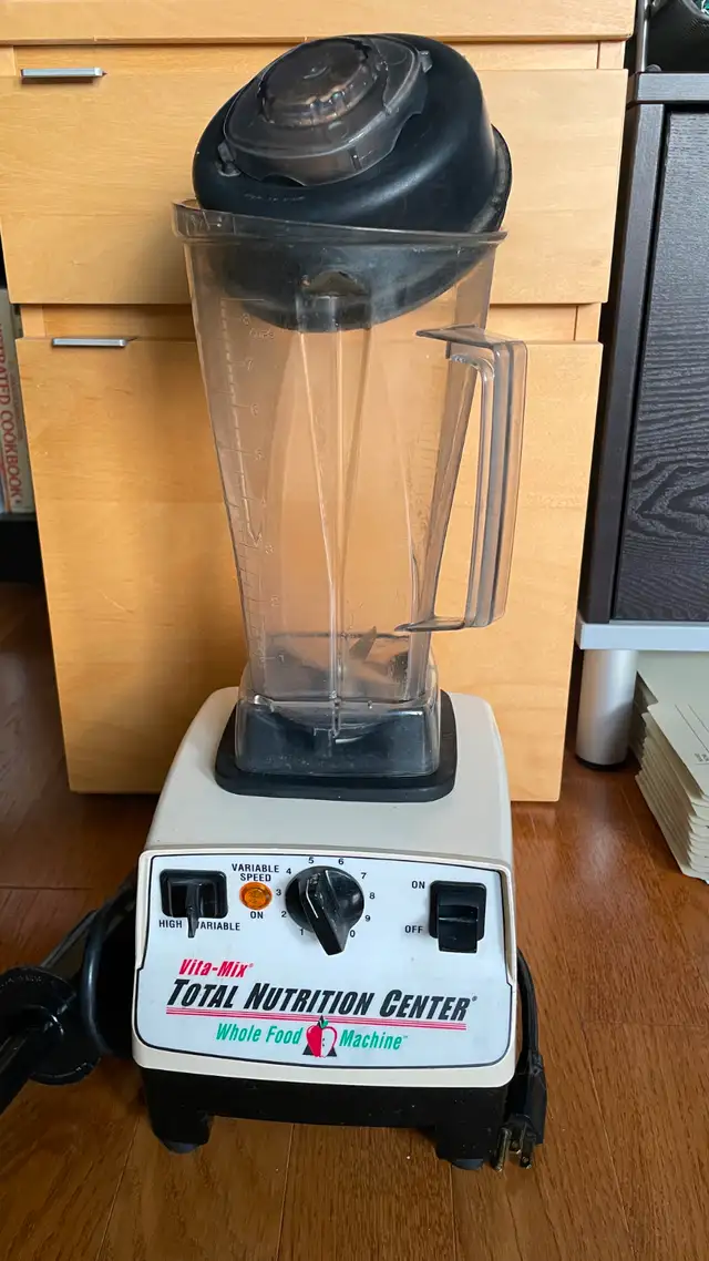 VitaMix blender, 64 ounce container, and tamper. This powerhouse of a blender has served us well for over 25 years. It's still in good condition and we are selling it as is.