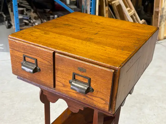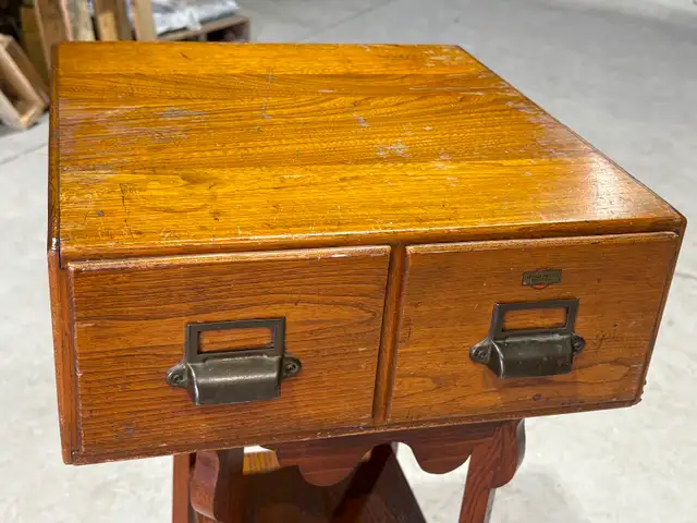 “Dawson Bros. Ltd.” of Montreal was a prominent Canadian card catalog manufacturer during this period, producing quality commercial and residential fixtures. The pieces are valued for their functional beauty, robust construction, and historical connection to pre-digital organizational systems. Interior designers and DIY enthusiasts frequently seek authentic period pieces like this to add character to an office or home space.