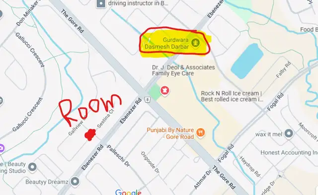 One room for rent in a 2 bedroom basement near Gore Road and Dashmesh Gurudwara.