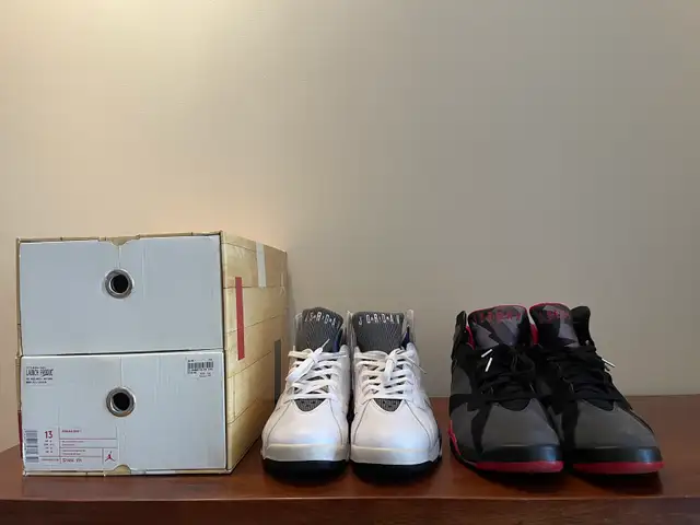 The Jordan Defining Moments Pack (7/7) is a package of two pairs of basketball sneakers, both Jordan 7s. They honor Michael Jordan's iconic performance in the Chicago Bulls vs. Orlando Magic game on January 13, 1993, when MJ scored 64 points in an eventual overtime loss.